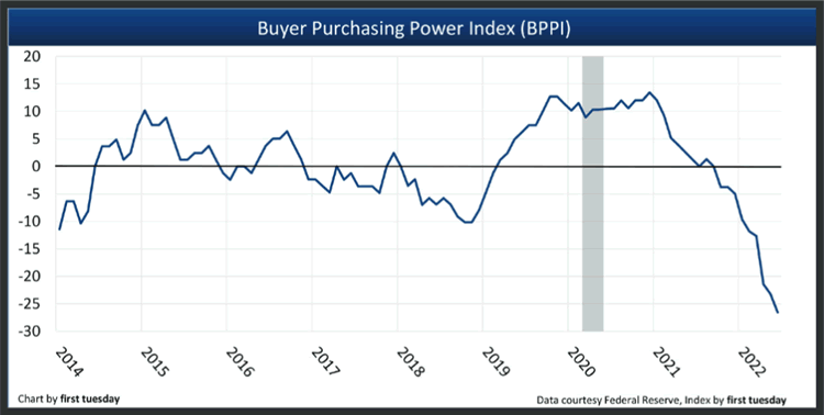 As the BPPI declines, so goes support for home prices. In today’s rising mortgage interest rate environment, both the BPPI and homebuyer participation in the home sales market are adversely affected.