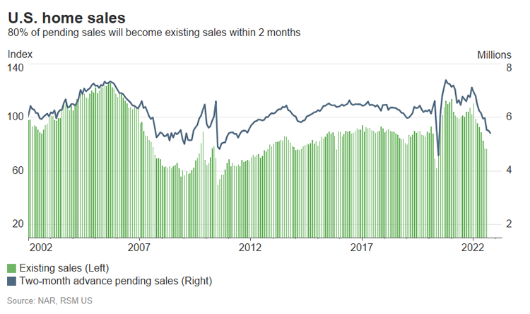 As a result of the current interest rate environment and weaker economic activity, NAR expects existing-home sales to decline 15.2% in 2022, to 5.19 million units, while new home sales are projected to fall by 20.9%.